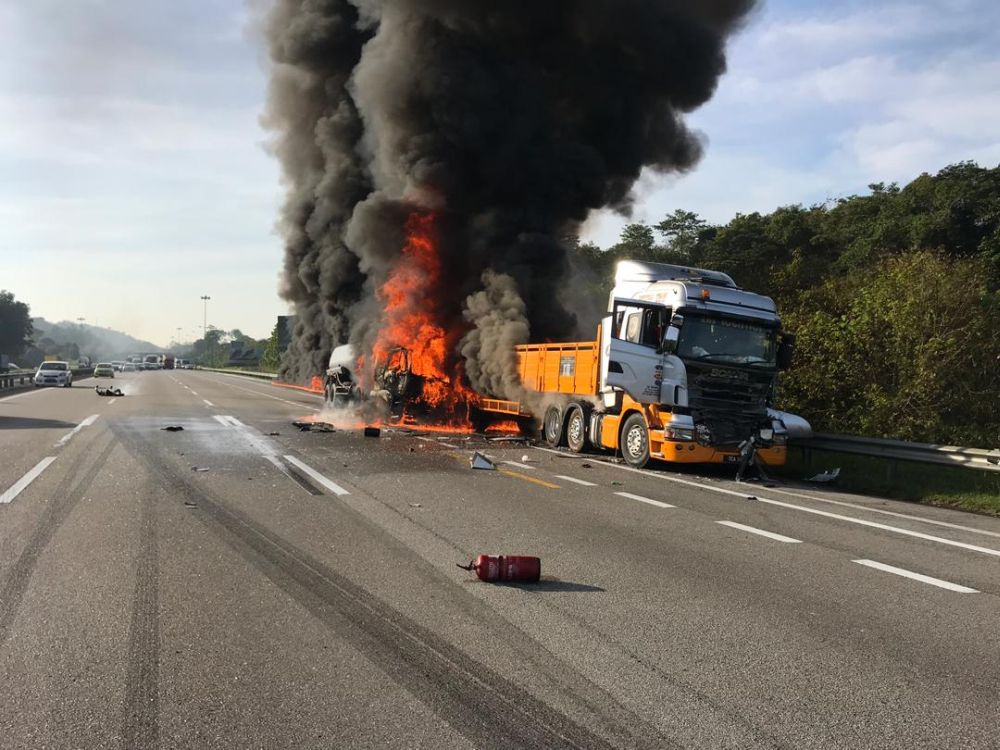 MUALLIM, Feb 23 ― A driver was burnt to death following an accident involving three trailers at Km372 of tNorth-Southuth Expressway northbound near Slim River today.