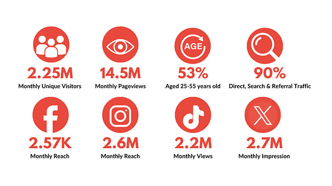 Fast-track your reach to a mature Malaysian audience of avid news readers who have an affinity to lifestyle, travel, media & entertainment segments.