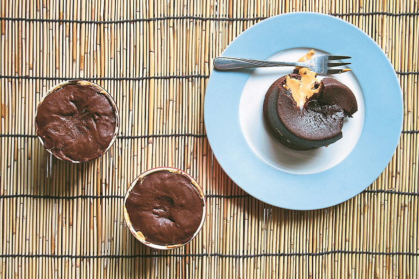 Behold a molten peanut butter and chocolate fondant cake doing a Pompeii. Zoom in on the copious amount of peanut butter luxuriously leaking out like lava. This, I decided, had potential.