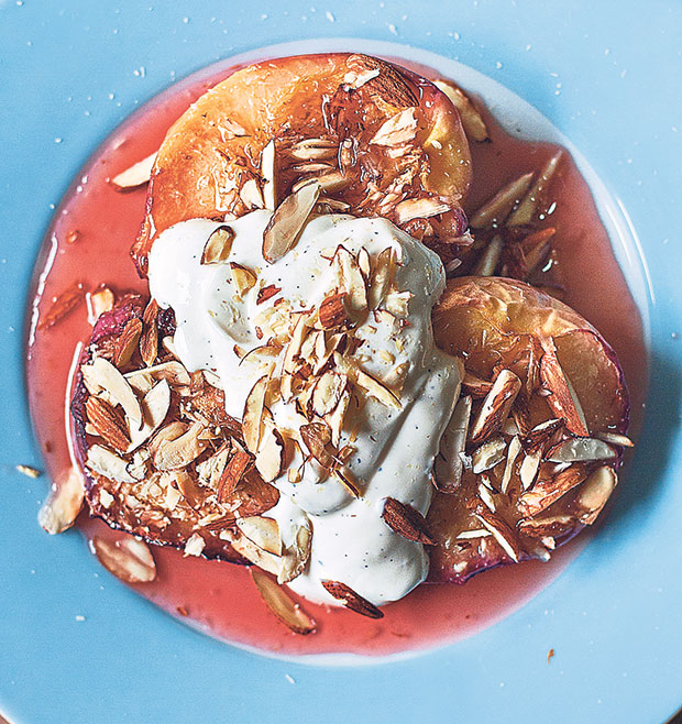 To be honest, I’m just too lazy. To enjoy peaches and cream (and vanilla) without all the fuss, why not replace the vanilla ice-cream with crème fraîche infused with fresh vanilla seeds? That’s all the vanilla fragrance and creaminess with none of the sugar.
