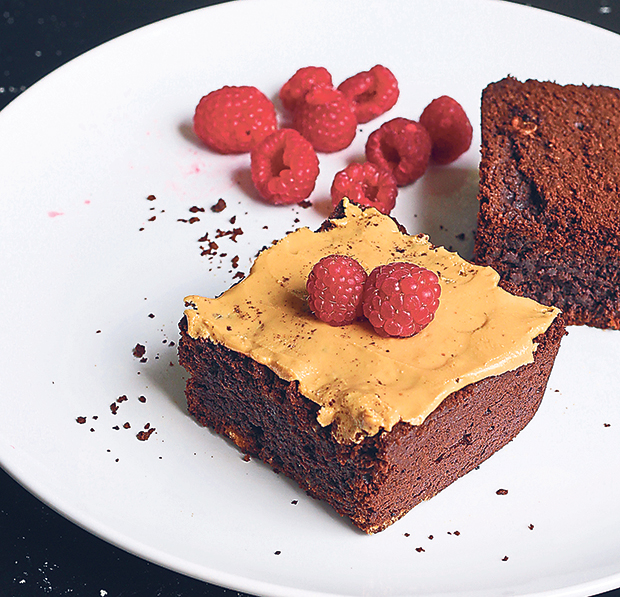 DARK CHOCOLATE CAKE WITH RASPBERRIES & PEANUT BUTTER