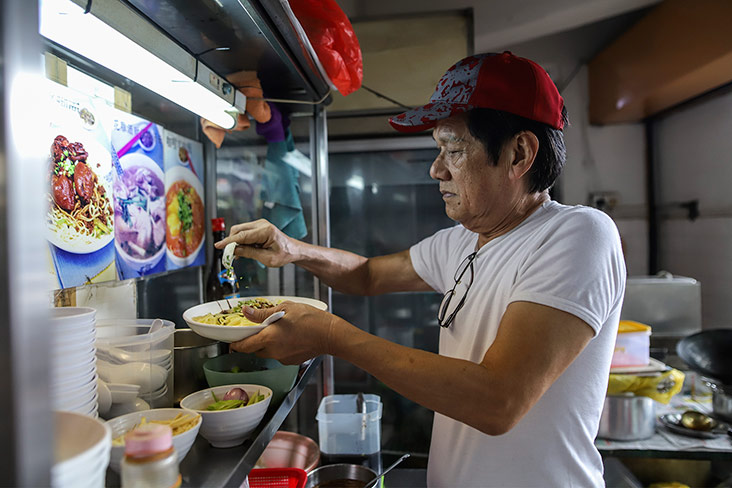 Go for the mutton curry noodles when you’re here. It may have a fiery red hue but it’s mild tasting. What makes the curry incredibly delicious is the mutton broth base eked from boiling for about three hours. Usually, he keeps it overnight, allowing the flavours to develop further.