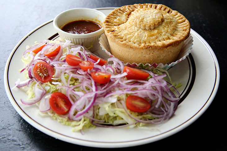 They also make a vegetable pie and a non-spicy chicken pie. All the pies are encased in a buttery crust, using a family recipe.
