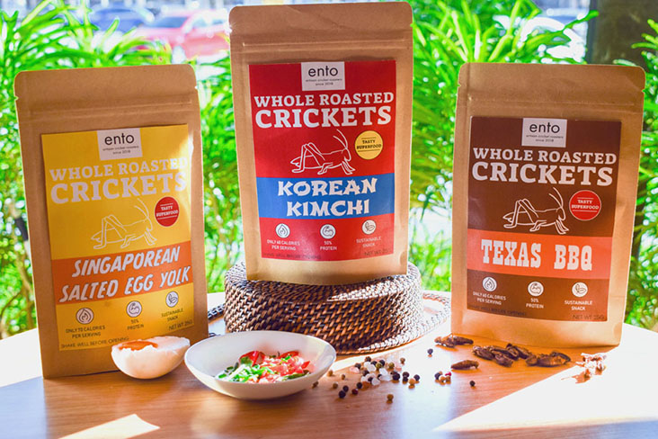To help sweeten the deal, so to speak, Ento’s whole roasted crickets are available in consumer-friendly flavours such as Korean Kimchi, Texas BBQ and Singaporean Salted Egg Yolk.