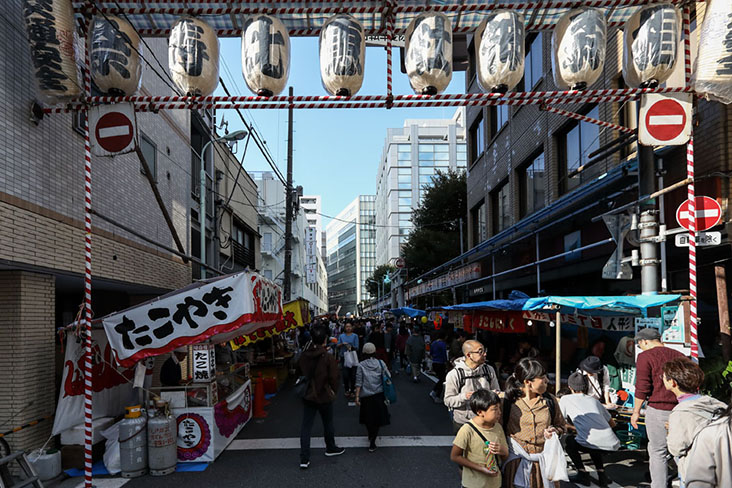 Known as the Nihonbashi Ebisu-ko Bettara Market, the streets in this area are filled with between 400 and 500 street stalls every October 19 and 20.