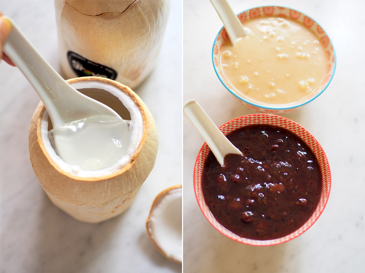 The jelly is encased in a coconut so you get the best of both worlds. You start by eating that slippery smooth jelly. Once that is finished, spoon out the coconut flesh. Delicious!