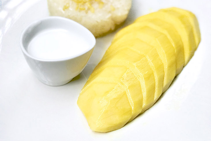 The loosely packed grains of glutinous rice suffused with coconut cream, the luscious flesh of just ripened mango, dripping with juices with every bite.