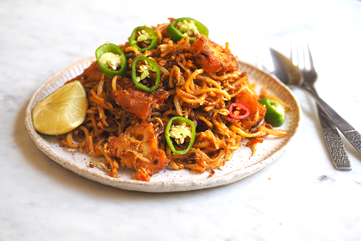 The secret to the fried noodles is Saleem's own made sauce using chilli boh and a mix of herbs such as lemongrass, galangal, garlic and ginger.