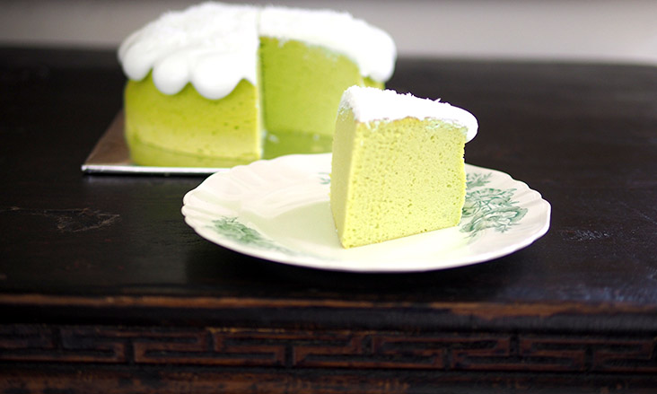 On its own, the cake has a very subtle pandan taste. Don't expect a full blown flavour like say a pandan layer cake. What actually makes it a cake you want to keep eating again and again is that fluffy, moist texture. It really tastes like a steamed cake but a light airy one. It's best eaten chilled. What I really enjoyed was that the cake was not overly sweet.