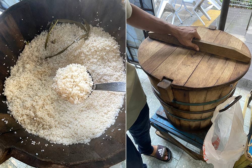 Here, the rice is the highlight for me. It's prepared the traditional way and kept steamed in a wooden bucket.
