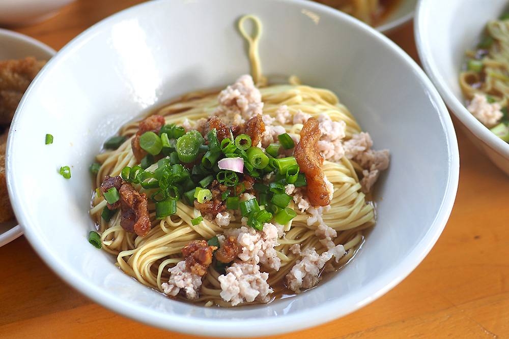 Toss it thoroughly with their soy sauce mix, fluffy minced pork and lard fritters. The lard fritters are exceptionally good, crunchy with a fluffy bite.