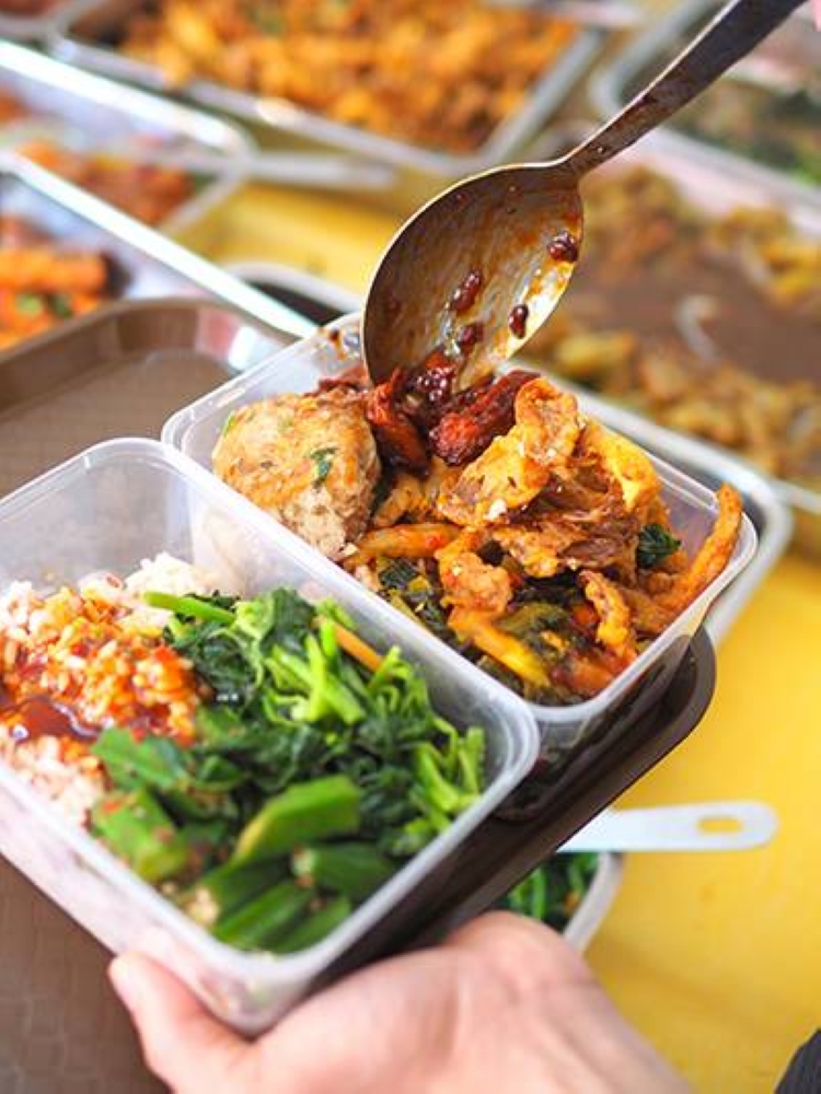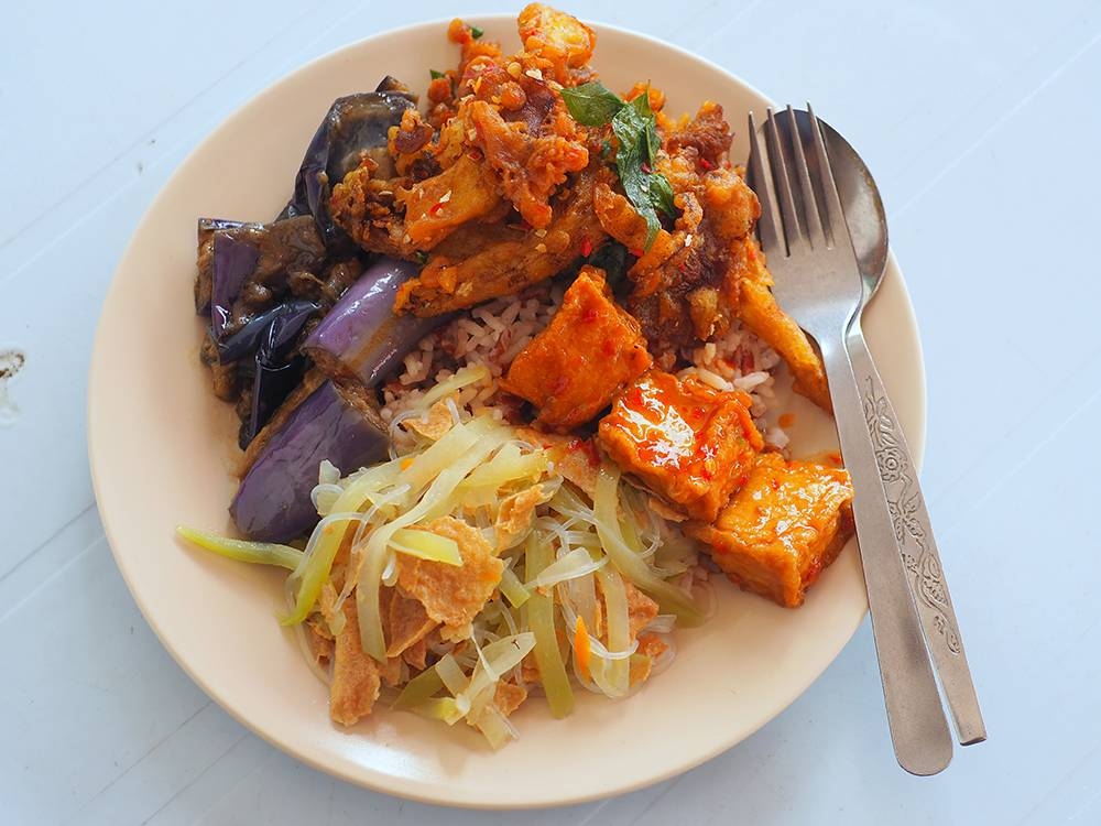 You can have white or brown rice. Some even prefer the nasi lemak rice if there's any left over from breakfast.