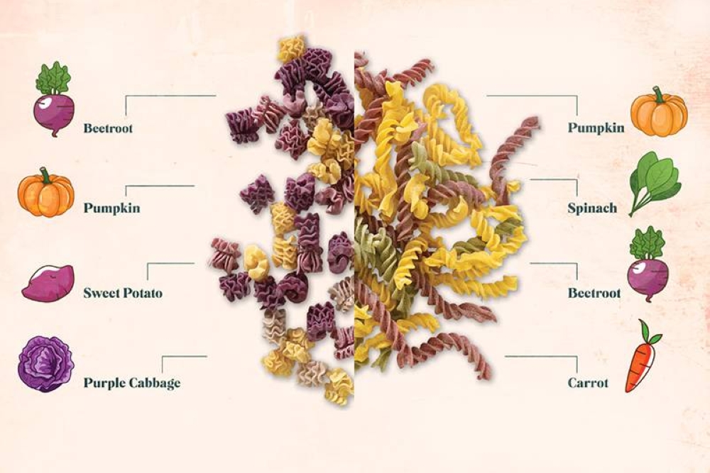 The result is a plethora of nuudles made with spinach, carrots and pumpkin. An explosion of antioxidant-rich red-purples from sweet potatoes, beetroot and purple cabbage.