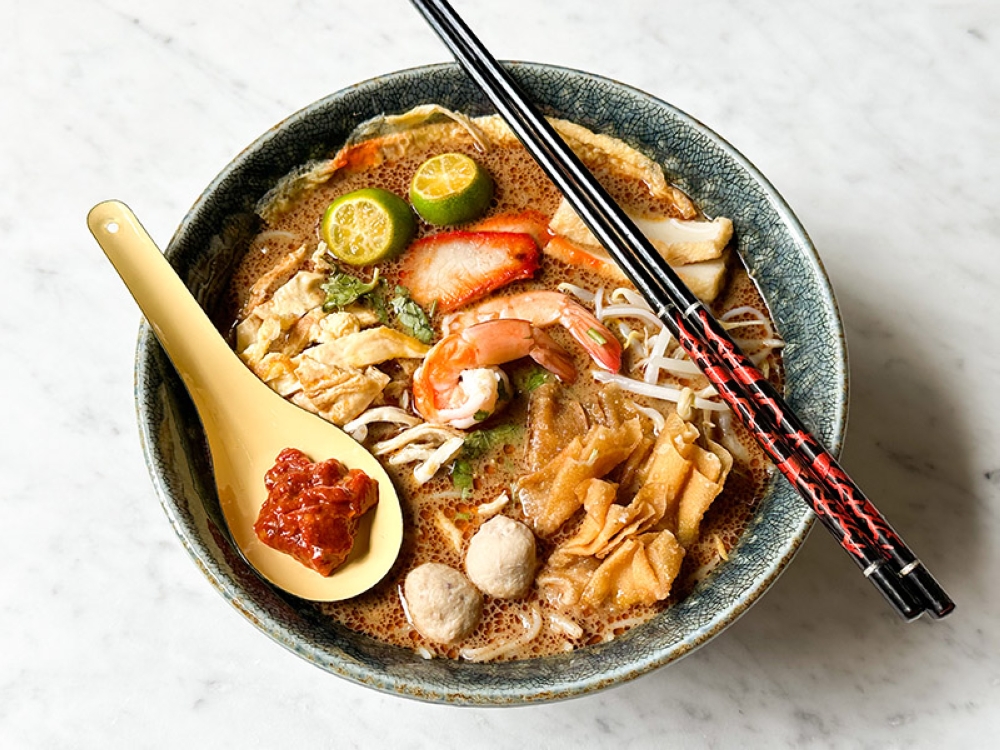 As you drink more of that flavour packed broth, there'll be a tingle of heat. Mix in the sambal for more fire.