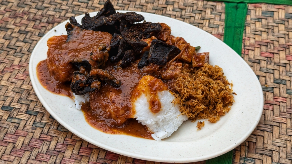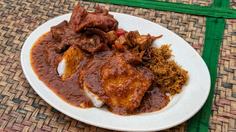 At Warong Dahaan, you can choose from ayam rendang (RM12), daging kicap (RM12), paru rempah (RM12), and sambal sotong (RM14) as lauk to go with your lontong darat.
