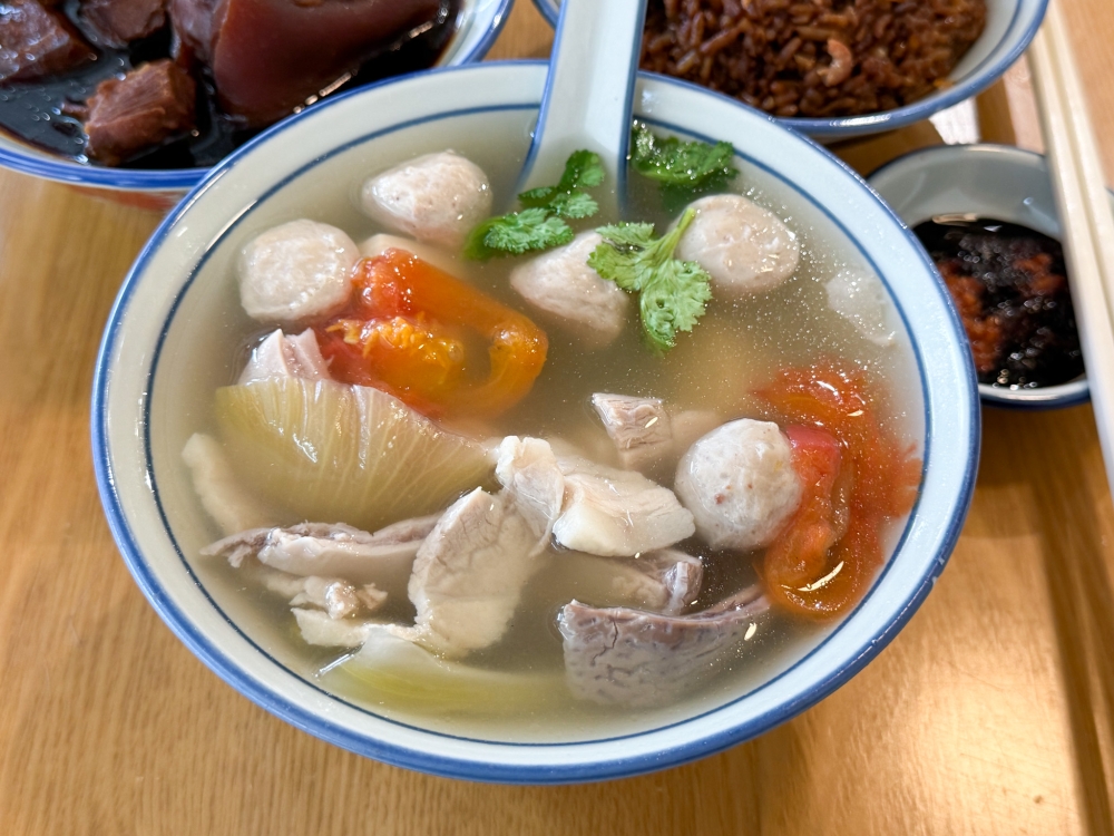Yam rice takes centre stage here, with various items such as braised meat, beancurd, egg and soups built around it.
