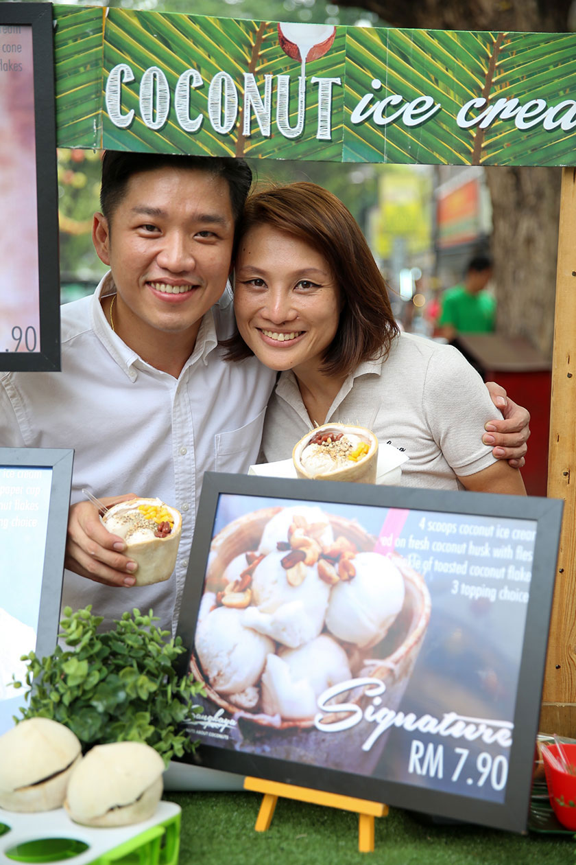 Usually artisanal ice-cream is reserved for stand-alone ice-cream parlours or distributed in cafes. However, Sangkaya bucks the trend by serving their coconut ice-cream at the street corner of Jalan Alor or at pasar malams all over Klang Valley. The company is the brainchild of John Issac Ho, 31 and Ivy Natnicha, 37.