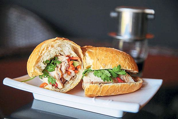 There’s a nice selection of Bánh mì to chose from — nine varieties including the traditional way dipped in condensed milk, eaten with beef stew or filled with Bò lá lốt that is grilled beef wrapped with wild betel leaves. Our favourite is the most classic version with roast pork, ham and pâté or the Bánh mì thit nuong chả lụa. It’s a delicious combination where the pickled daikon and carrot together with sprigs of fresh coriander lighten the whole thing up.