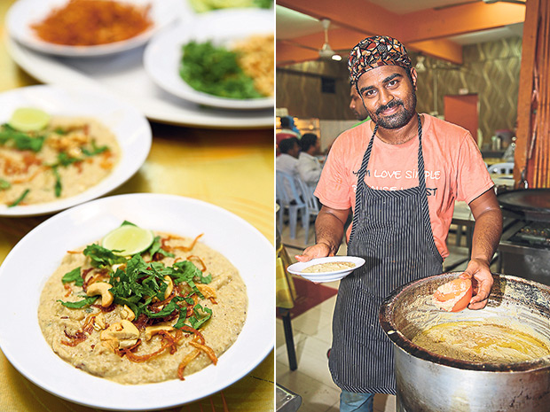 Best eaten hot, haleem is garnished with fried sliced onions, toasted cashew nuts, chopped fresh coriander and a squeeze of lime juice. The taste of the chicken haleem gets the thumbs up from Hyderabad expatriate Mohammed Shamsher Ali who has been in Malaysia for four years. The IT expert who can easily eat a bowl of haleem every day during Ramadan is looking forward to the mutton version, since he reckons it’ll be tastier.