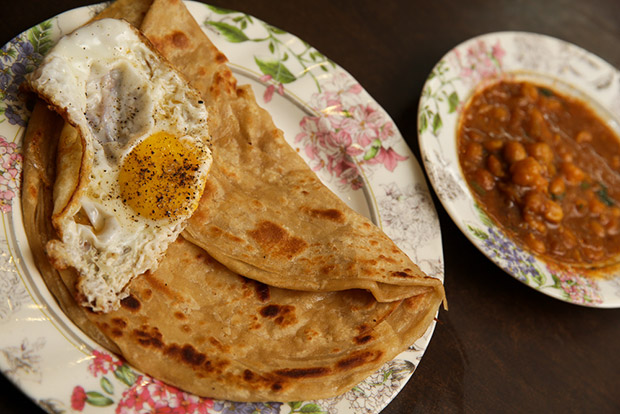 In the morning, they serve paratha and chapati that you can enjoy with chickpea curry and fried eggs. By noon, the counter will be heaving with dishes and lunch is served.