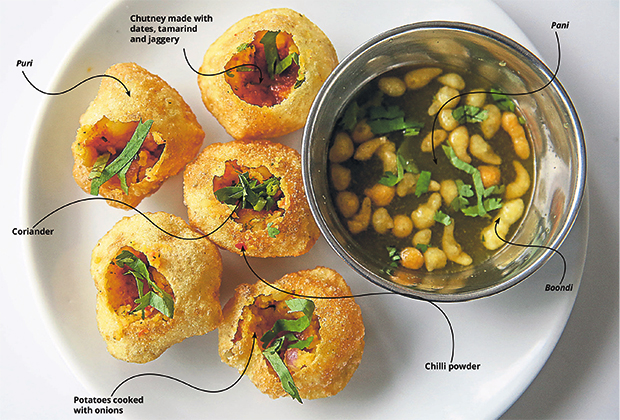 Depending on the stall, you also have crunchy boondi. You either dip or pour the pani or flavoured water that is spicy and sweet into the shells and pop it in your mouth to get a variety of textures and flavours.