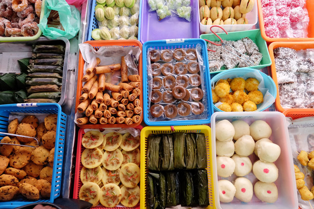Other than stalls selling Malay rice and dishes, the bazaar has a number of kuih stalls selling traditional homemade kuih such as kuih kosui, kuih pelita, pulut udang, kuih keria, lepat pisang and seri muka.