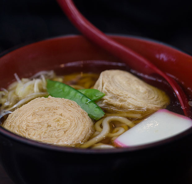 During the day, yuba is best enjoyed with noodles — be it udon (chewy, thick wheat noodles) or soba (thinner buckwheat noodles).