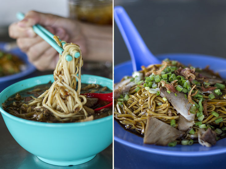 Our other order of dry kampua noodles, by comparison, looks quite ordinary. Basically a plate of oil-slicked noodles served with a dark sauce and slices of rather lean char siew (barbecued pork). Maybe it’s the springy noodles or maybe it’s the the fact you can’t go wrong with soy sauce, but this unassuming dish hits the mark, perhaps more readily than the loh mee (which will have its detractors, taste and texture-wise).
