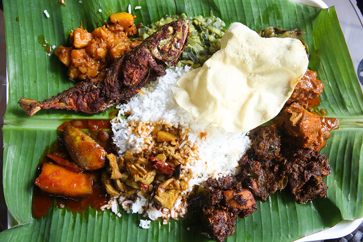 You may get some unusual items like his tasty spring onion dhal. Try his mango pachadi too as it's made from apple mangoes that give it a nice aroma. On Fridays, they offer five different vegetable dishes. For Sundays, you get a bigger spread that includes crabs.