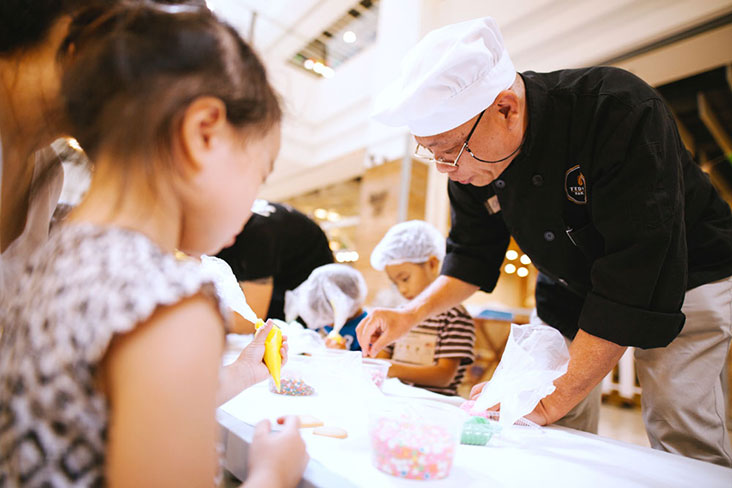Tang says, “We don’t allow the children to touch the oven so we bring them to the kitchen to bake. Ted is always the reference... as he enjoys pizza, spaghetti and sushi, these classes got developed!”