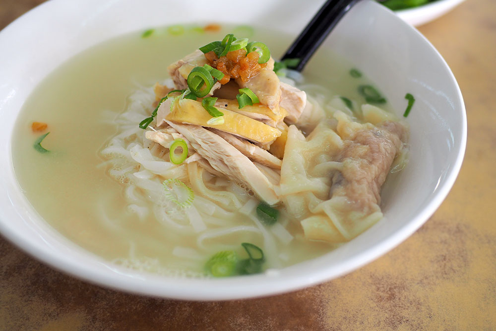 Dine here for their hor fun served with shredded poached chicken, fish balls and pork belly slices. For added flavour, they top the noodles with a spoonful of fragrant fried shallot oil, lard crisps and chopped spring onions.