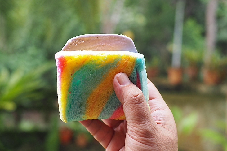 What makes her unique is she sells the ice cream with rainbow bread (RM6 per loaf). It was her own initiative to find someone who bakes that fluffy rainbow bread.