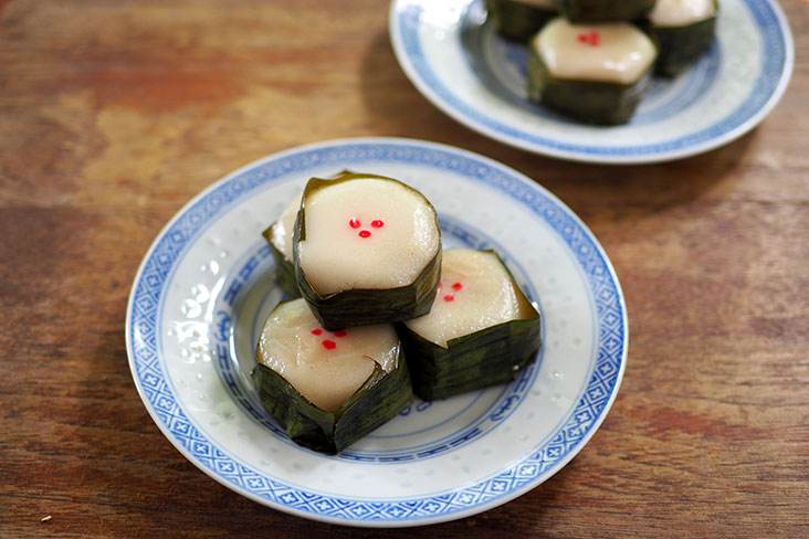 The yi bua is made using a recipe passed down from her grandmother. Wrapped within a slightly chewy skin made from just glutinous rice flour, you will get a generous filling of fresh grated coconut, roasted peanut nibs, white sesame seeds, Bentong ginger, winter melon candy, gula Melaka and candied mandarin orange. What I like about this kuih is how each ingredient used plays a part.