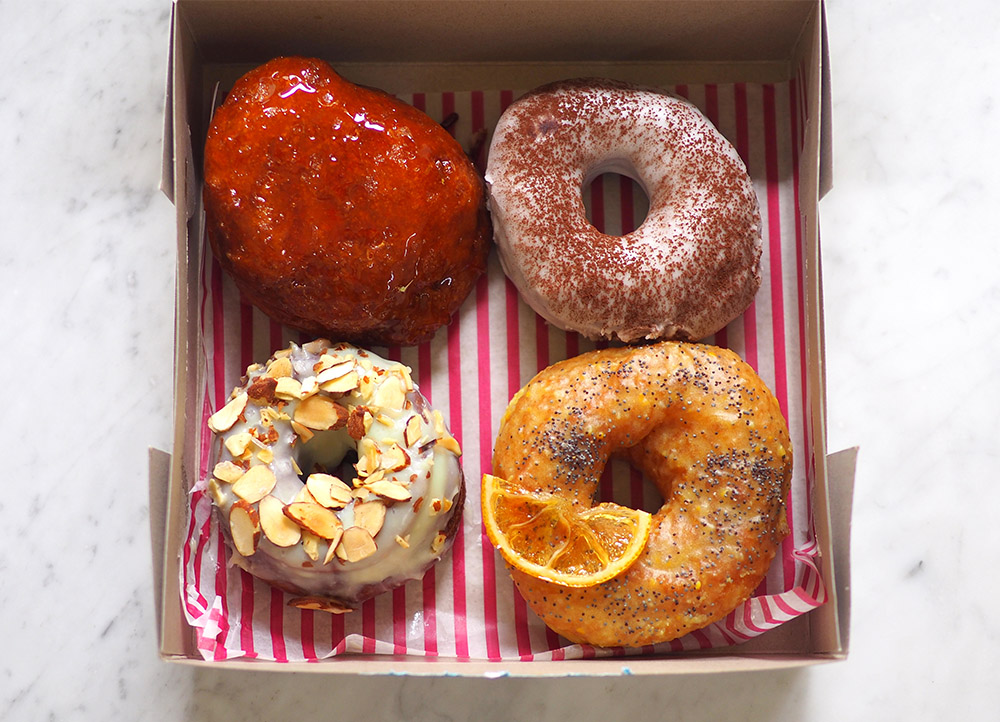 For this week, they are offering Brown Baby (house sugar glaze and Valrhona cocoa powder), Lucifer (spiced chili and Valrhona cocoa powder), Burnt & Salty (brown butter sugar glaze with Maldon black sea salt flakes), Créme Brûlée (filled with vanilla créme pâtissérie) and baby-sized Cinnamon Affair (cinnamon, cardamom and nutmeg infused sugar) doughnuts.