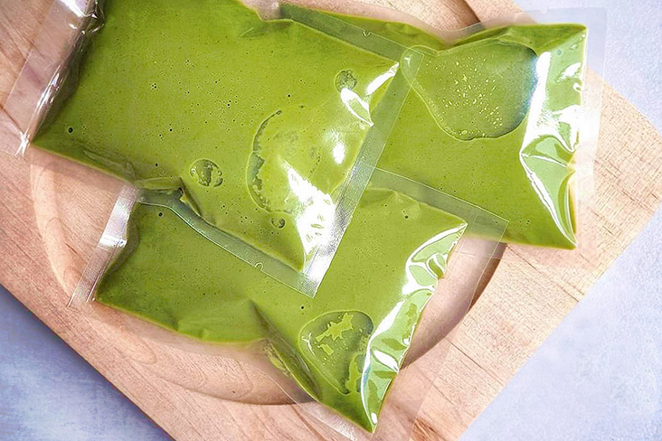 Indeed, a generous contribution from Slimer of Ghostbusters fame also comes to mind but no: These are sachets of homemade concentrated lei cha paste.