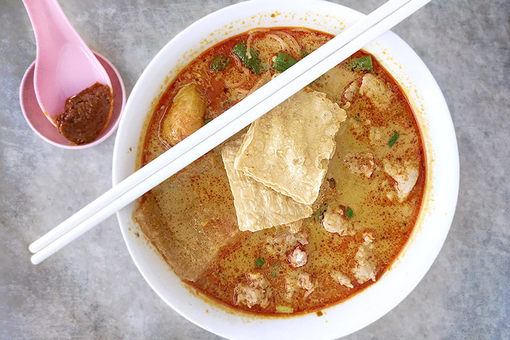 Firstly — and perhaps most importantly — you have the rich and flavourful curry broth, redolent of the good stuff that goes into it: dried chillies and curry leaves, ginger and lemongrass, as well as creamy santan (coconut milk).
