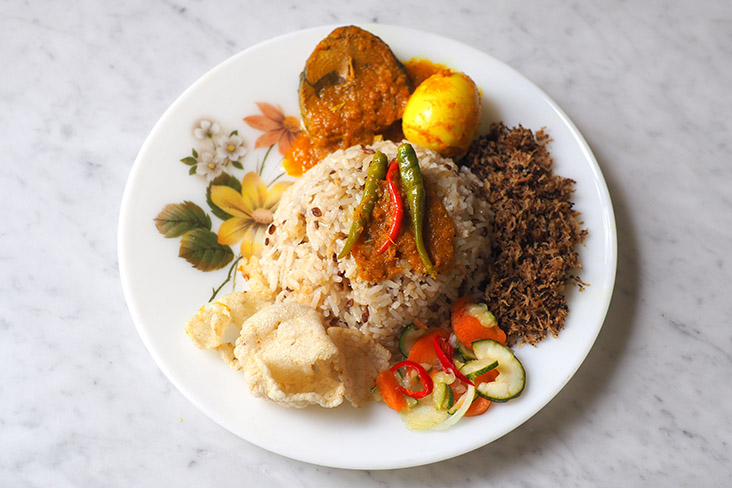 You can select from an assortment of dishes to pair with your choice of rice. Stand outs include the daging kerutuk, gulai kuning ikan tongkol and their solok lada. There's also daging bakar, ayam percik and ayam masak merah.