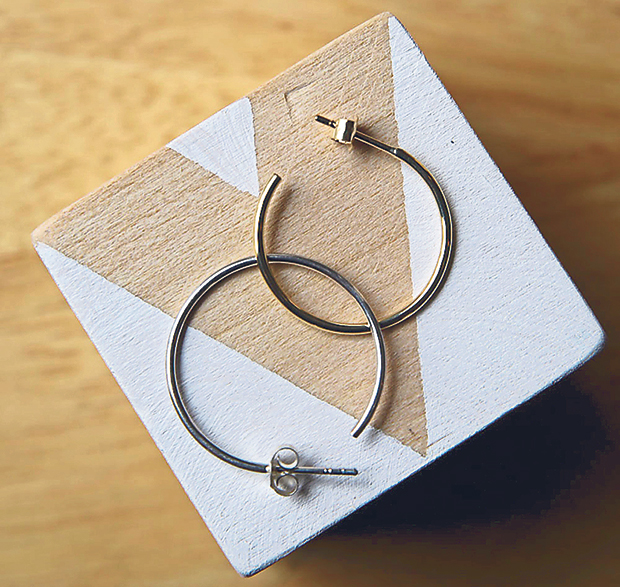 There are 13 designs in total: nine ring designs, three earring designs and two necklace designs. Each design comes in either 14-karat gold or sterling silver. Each of the ring designs has five sizes. There are sizes with conversions for UK, US and Asian sizing. There is no resizing service now but you have the option of swapping with another size if it doesn’t fit you.