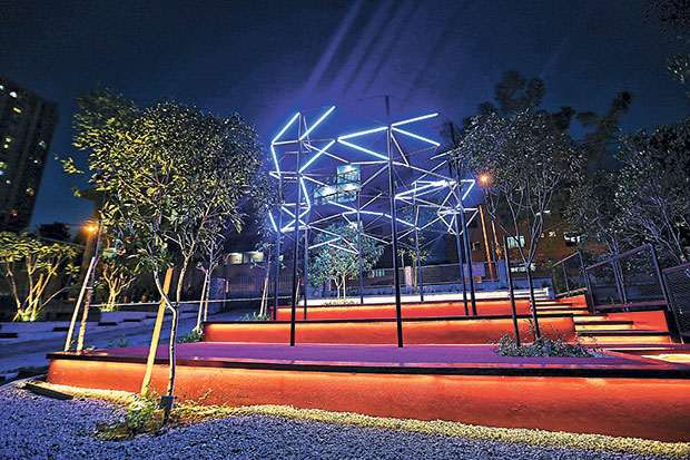 Inspired by lightning, Ong created Bolt as a homage to the natural phenomenon’s ethereal form and visceral behaviour. The installation is made of an intricate network of LED tubes on steel legs that display a series of curated lighting patterns at a selected time every night.