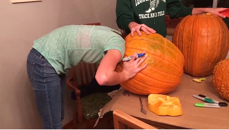 Apparently not. What started out as a family pumpkin carving activity turned out to be a hilarious event for the rest of the family as this teenaged girl puts her head in a pumpkin and finds that she can’t get it out.