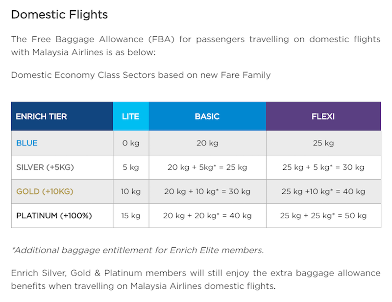 Malaysia Airlines has revealed that the lowest “Economy Lite” fare will not come with check-in baggage for domestic flights. If you’re thinking of bringing a check-in luggage, you’ll need to select “Economy Basic” which comes with 20kg or “Economy Flexi” with 25kg of allowance.
