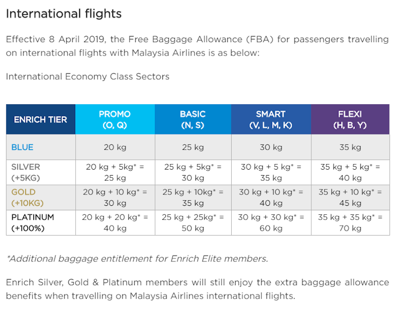 If you’re an Enrich member on a higher tier, you can get an additional allowance of 5kg on Silver, 10kg on Gold and 15kg on Platinum.