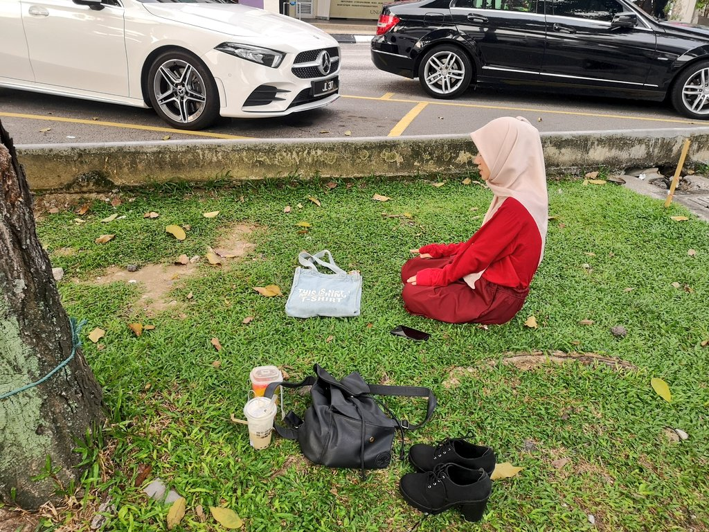 “It is not that we did not try to look for it but we are not from KL and not used to that area. The time to pray has become nearer so my cousin decided to look for an open space that is clean to pray.”