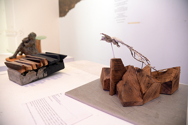 Iron sculptor Aboud Fares turned the wood into smaller interactive pieces that are bound and fitted together like a puzzle in a piece called “Unity.”