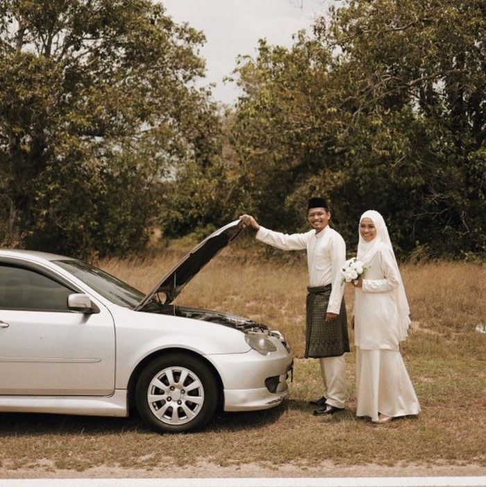 Pahang couple pose for roadside wedding pictures after car breakdown as photographer praised on Twitter