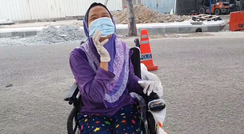 The disabled lady, simply known as Noraini, was spotted by Home Ministry employee Khairul Zulkefli outside the NSK supermarket in Selayang near Batu Caves.