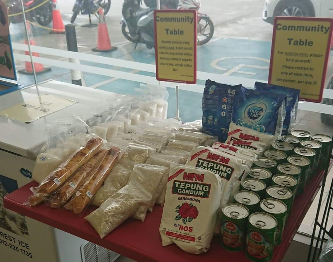 Called the community table, it now offers flour, salt, sugar, milk powder, cheesy sticks aside from canned sardines and rice.