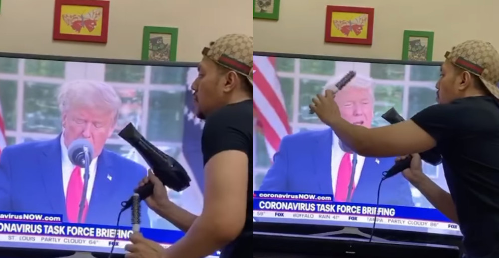 That’s mainly because social media users were amused by his witty video of himself blow-drying United States president Donald Trump’s hair, as it swayed in the wind in one of his recent press conferences.