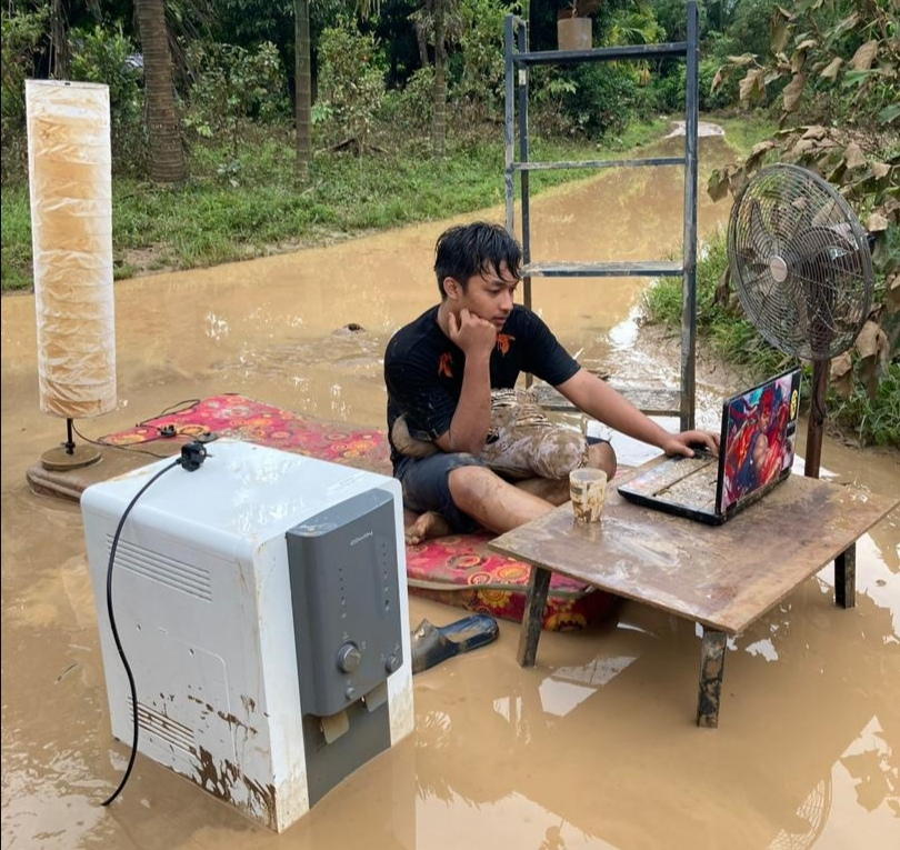 Malaysians affected by floods take to social media to share lighthearted moments on dealing with the situation (VIDEO)