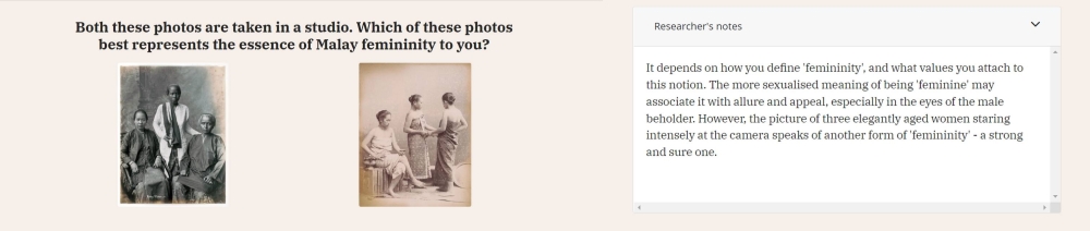 “When we talk about how stereotypes get solidified, images tend to be the ones that are really seared into the mind “So if you look at how different people and communities are represented, photographs can offer insight into unpacking ideas around things like gender, race and class.” Maznah is part of the team behind Being and Becoming: Of Femininities in the Malay World Through 50 Images, a virtual exhibition aimed at sparking conversation about Malay womanhood through colonial-era imagery.